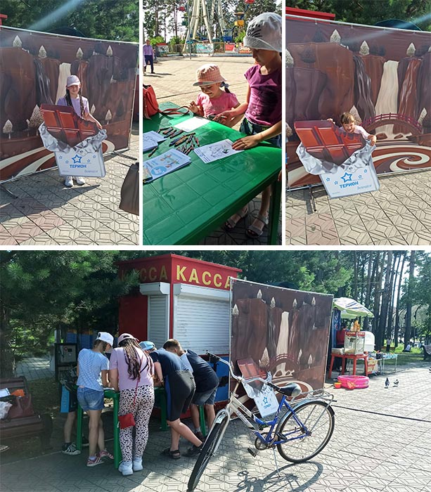 Каждый желающий смог сфотографироваться на «Шоколадной» фотозоне, от компании «Терион», с гигантской шоколадкой, а ребят ждали шоколадные раскраски!
